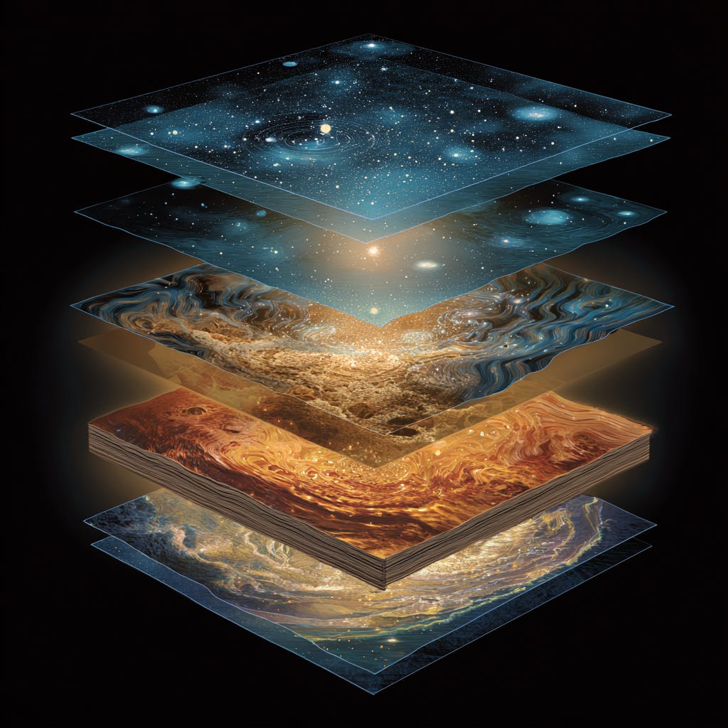 Reality can be understood as a stack of layers, where what we see is not the whole story but the final projection of deeper dynamics. The lowest layers describe what exists and how it changes, while the higher layers describe why it changes and how that “why” scales across people into civilization. In this view, the world is not just a collection of objects moving through time; it is a structured cascade where invisible principles become visible outcomes.